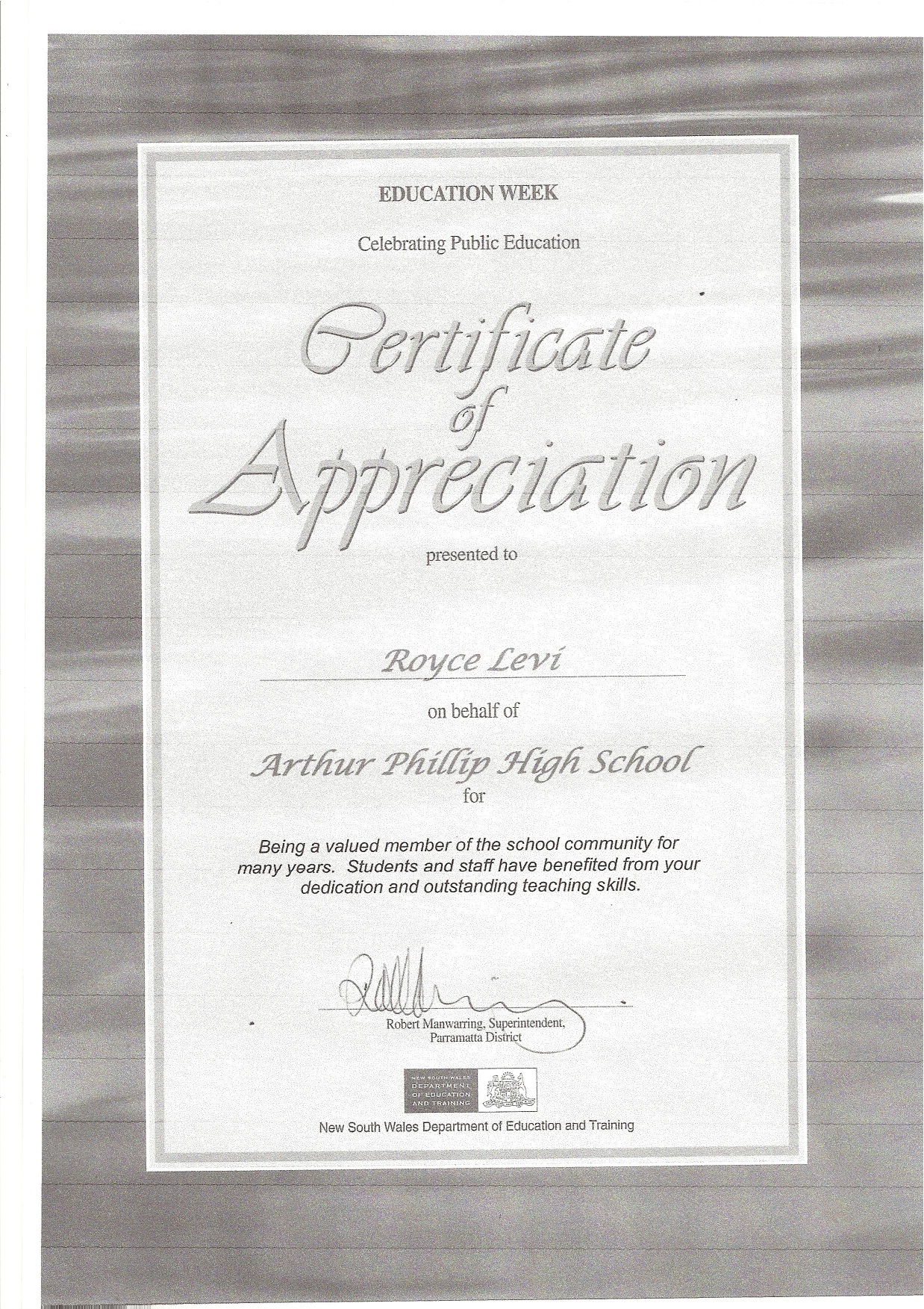 Royce Levi Australian Teacher and Author